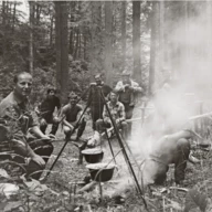 Marenda tijekom lova - 1981. godina S lijeva na desno: Anton Crnković, Damir Jakovac, Vjekoslav Crnković, Ratimir Grgurić, Slavko Bukovac, Ivan Podnar, Marko Golik, Josip Grgurić